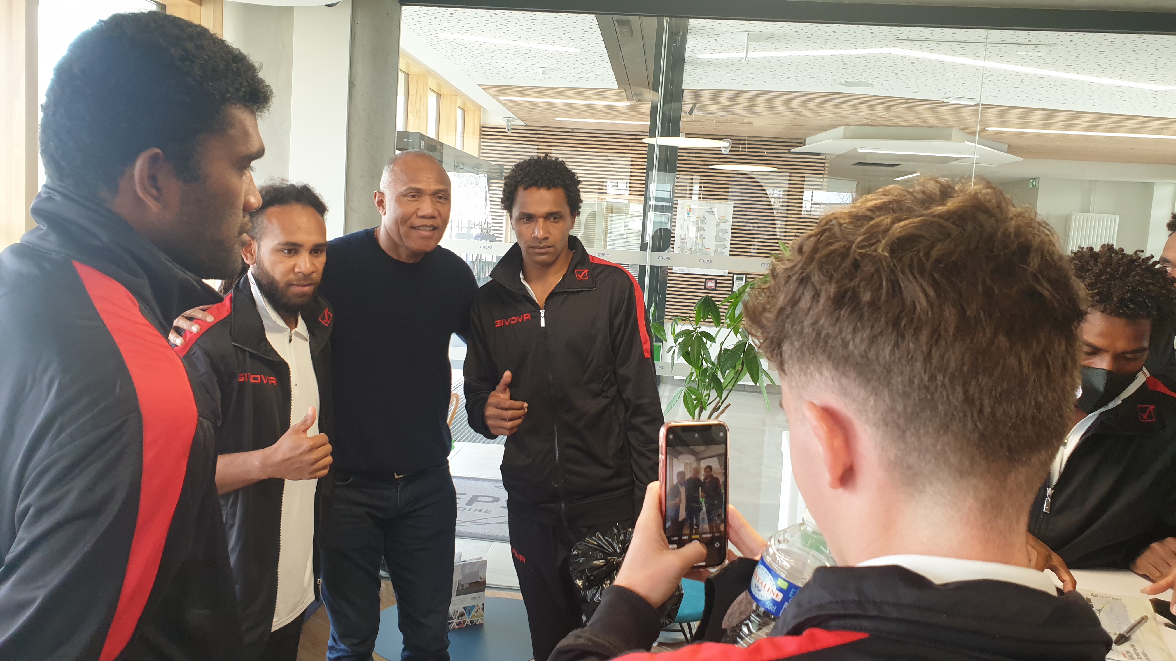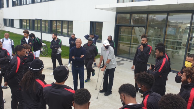 L'équipe, le staff et les dirigeants de la FCF ont pu souhaiter bonne chance au technicien nantais, qui disputera ce mercredi à La Beaujoire sa demi-finale de Coupe de France face à Monaco, dans un stade qui sera à guichet fermé, avec les cagous en tribunes comme premiers supporters ! Bonne chance Koulone !!