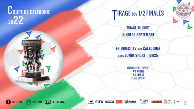 OFFICIEL FCF | TIRAGE des DEMI-FINALES de la COUPE DE CALEDONIE = lundi prochain - le 19 septembre - EN DIRECT TV sur CALEDONIA
