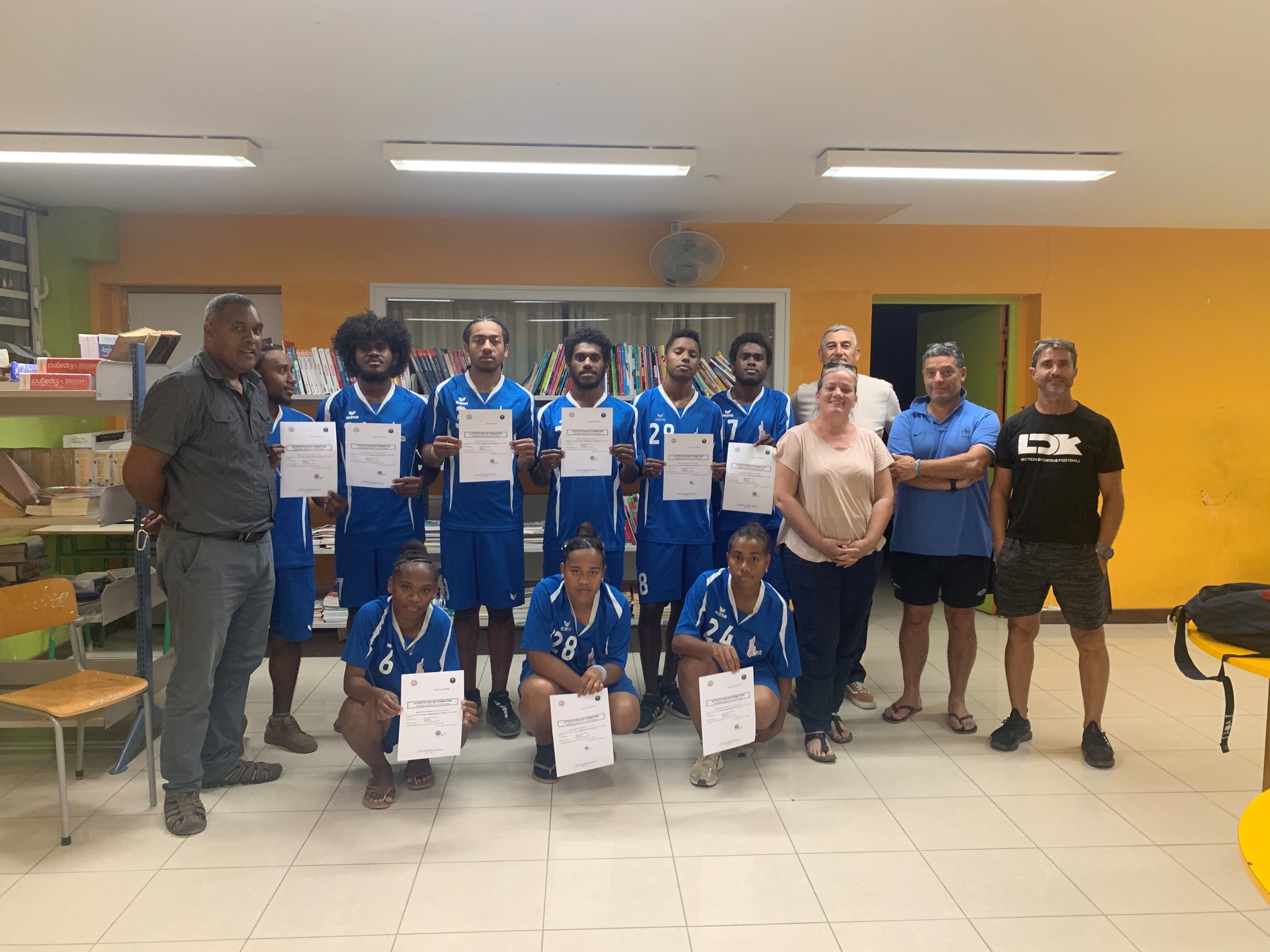 Une remise des attestations s'est faite en présence des Responsables Techniques Fédéraux, du club de l’Olympique et de la Direction du lycée. Photo : DO KAMO.
