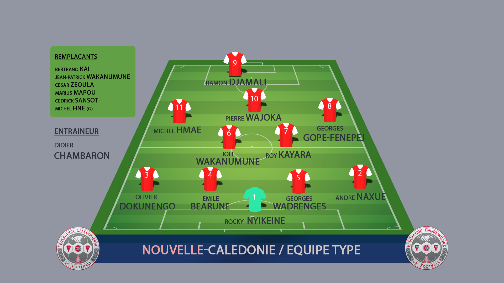 ⚽🇳🇨🇲🇫 Voici l'EQUIPE TYPE de NOUVELLE-CALEDONIE / " Légendes " qui s'est dégagée suite à vos votes sur la page facebook de la FCF #FEDCALFOOT #touscagous