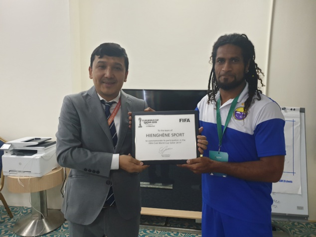 👉 Le capitaine emblématique de Hyehen - Bertrand KAI - ici aux côtés d'un des Responsables Compétition de la FIFA #ClubWC #Fedcalfoot