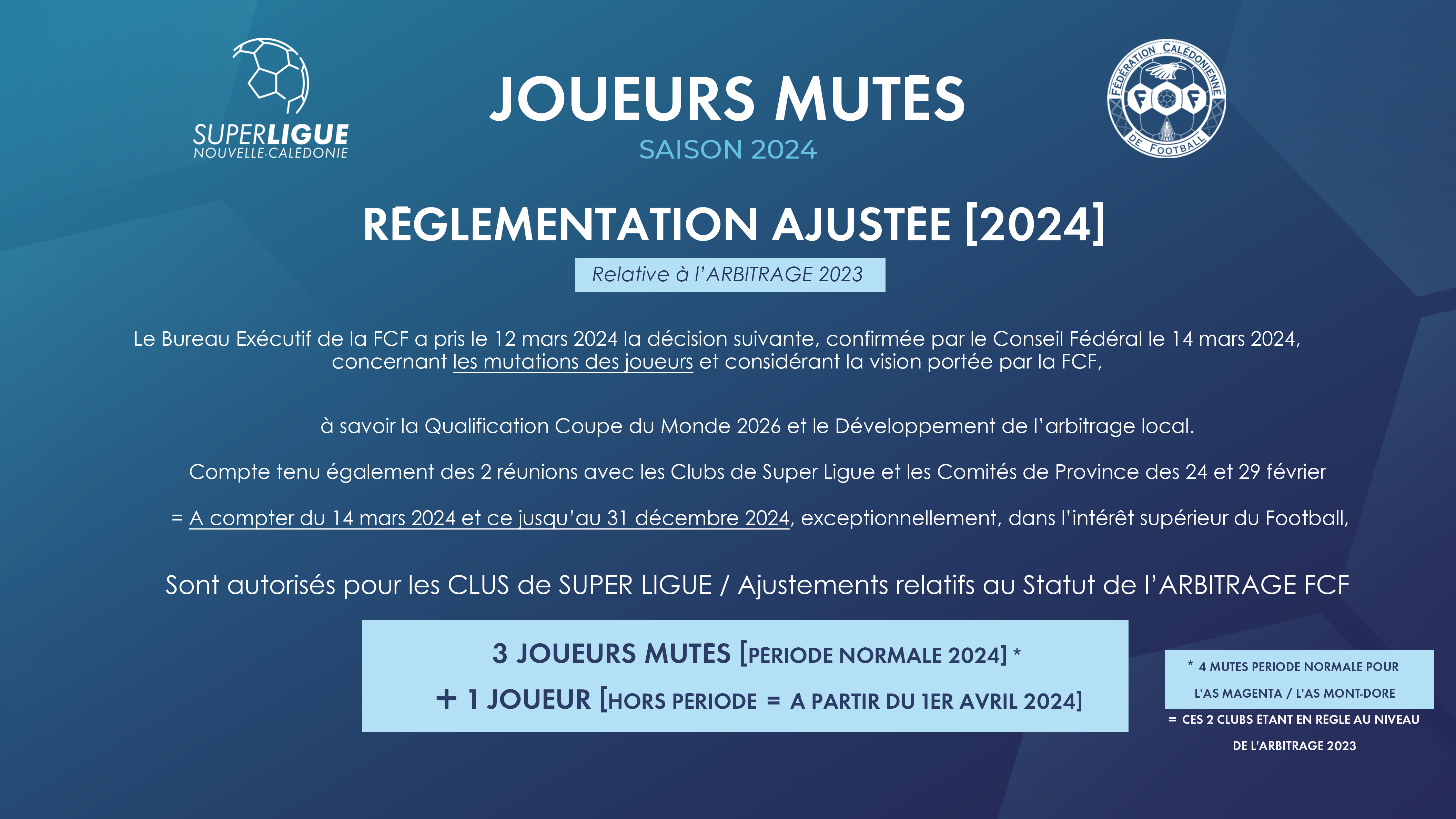 Joueurs mutés en SUPER LIGUE = réglementation ajustée pour 2024 | FCF