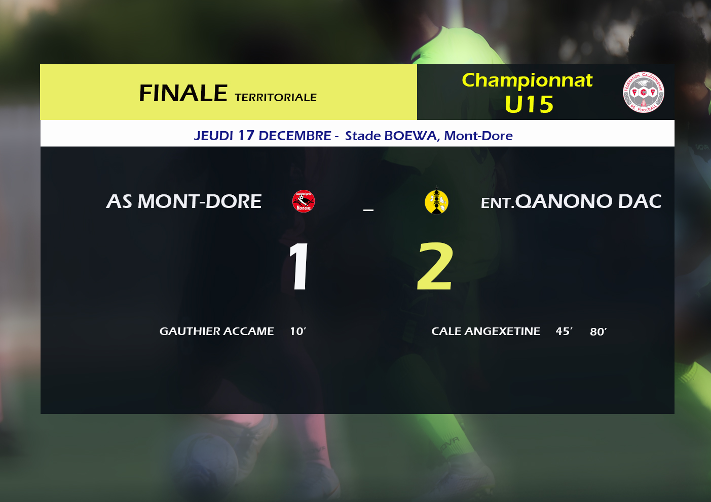 🏆 Un doublé de l'excellent Calé ANGEXETINE permet à l'équipe de Lifou de l'Entente QANONO DAC de s'imposer dans les dernières secondes de jeu face à l'AS MONT-DORE (2-1) : les Lifou sont Champions territoriaux U15 #fedcalfoot