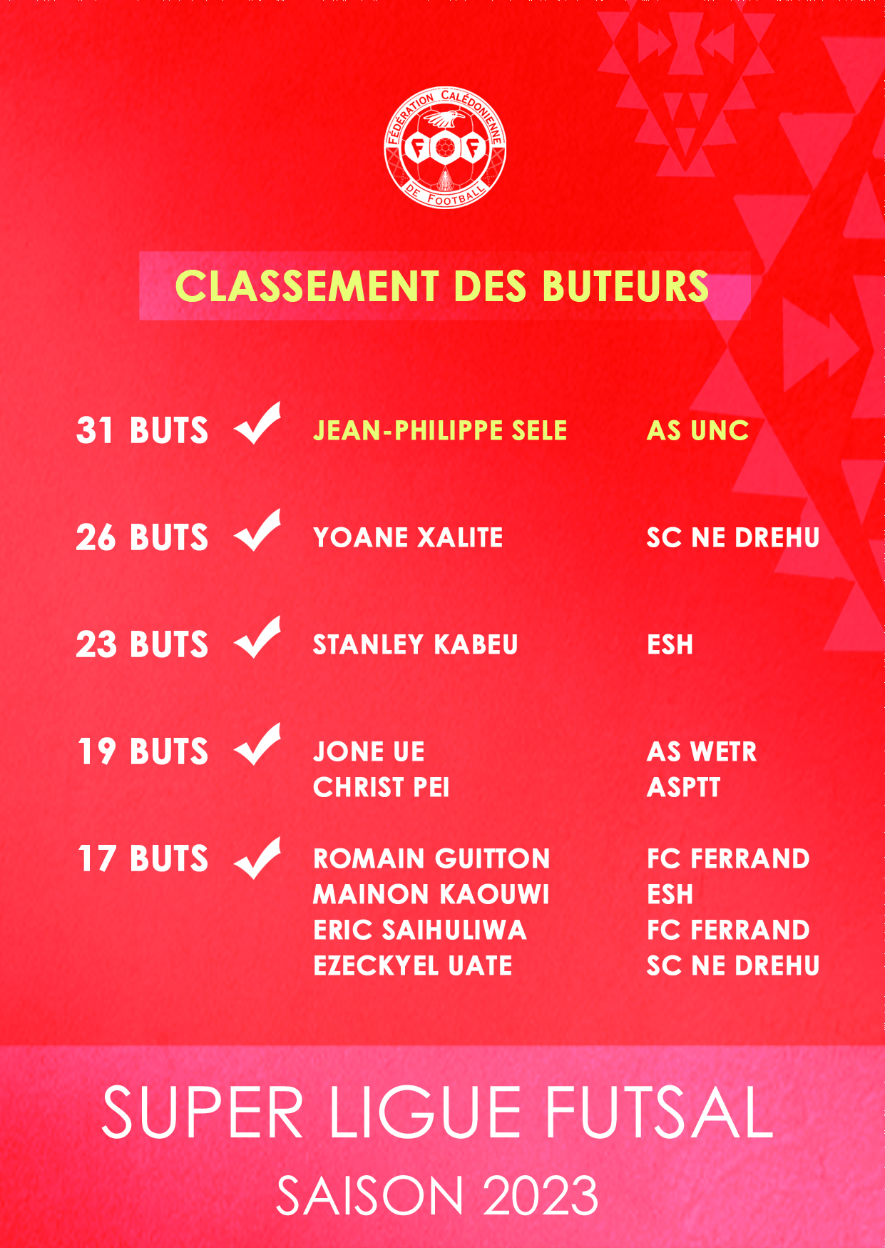 Le CLASSEMENT 2023 en SUPER LIGUE FUTSAL + Jean Philippe SELE (UNC) meilleur buteur de la saison