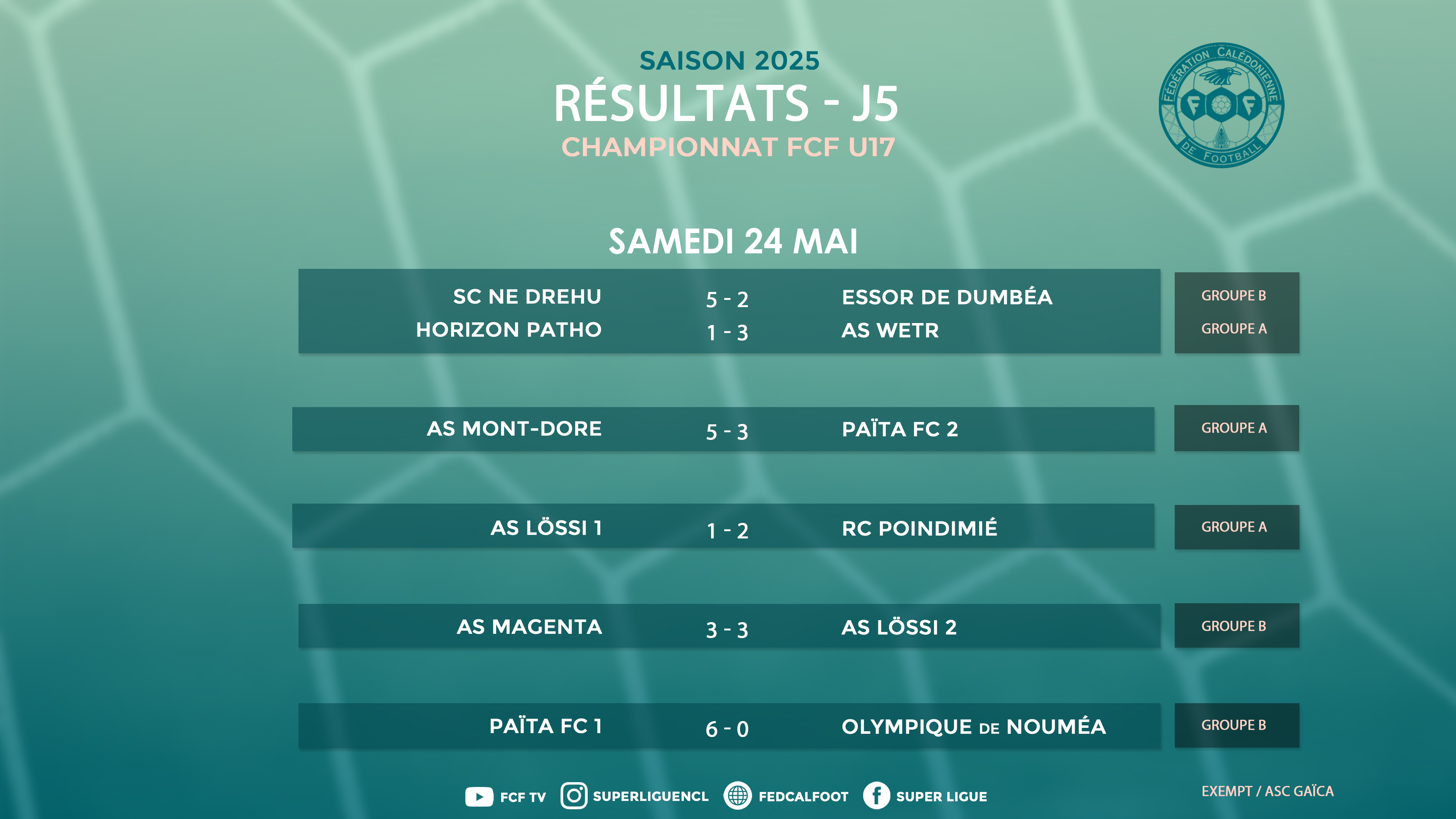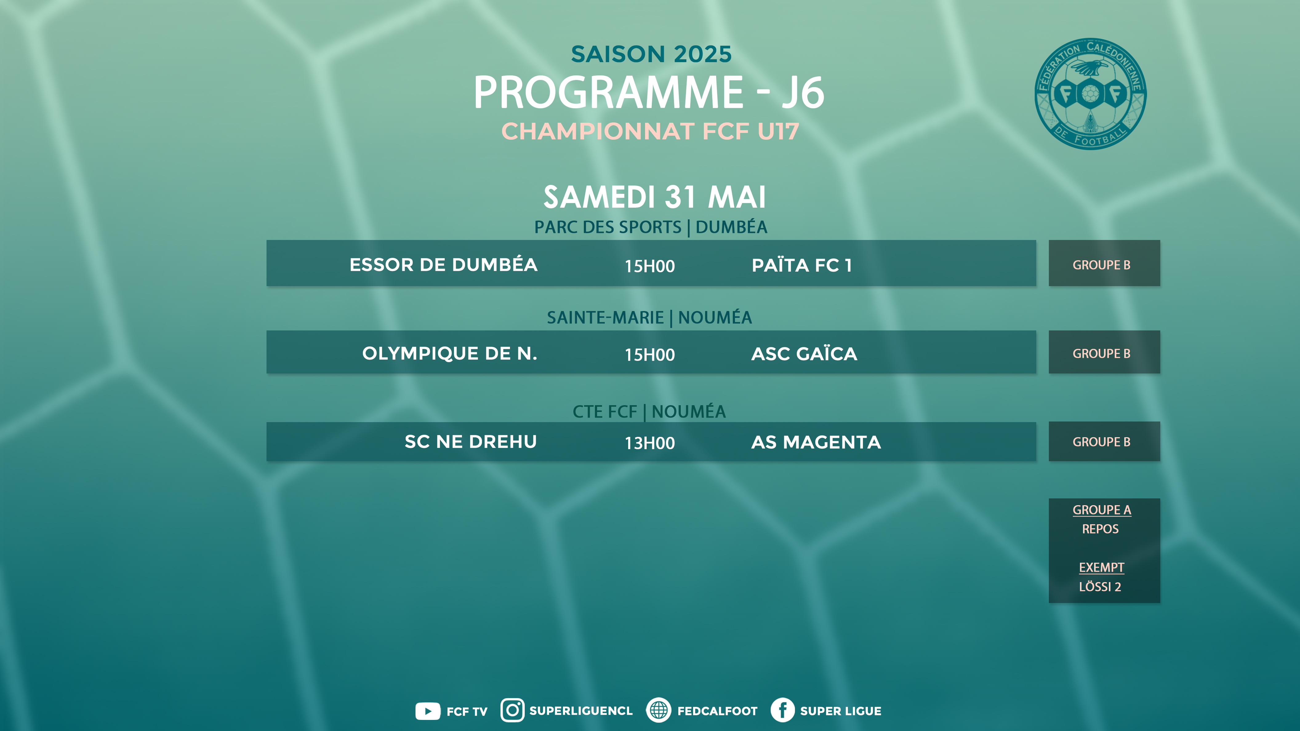 Le groupe A au repos ce samedi, pas le groupe B | Championnat U17 fédéral [programme - classement complet]