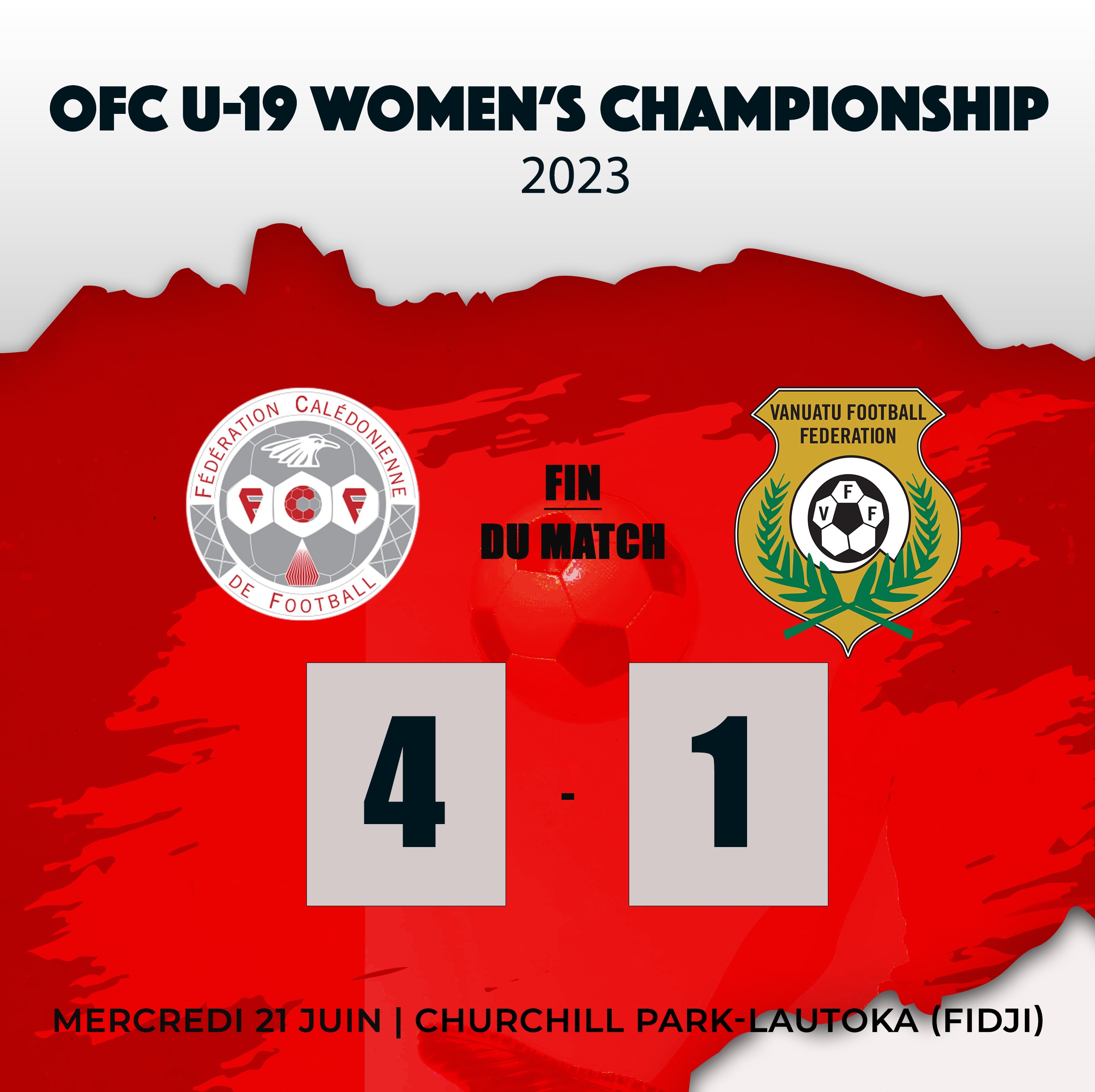 🇳🇨🇫🇷 OFC U19 WOMEN'S CHAMPIONSHIP | Deuxième victoire en deux matchs des U19 calédoniennes qui s'imposent sans trembler face au VANUATU = 4 buts à 1, avec notamment 3 buts inscrits en première période et en 12 minutes #espritcagou