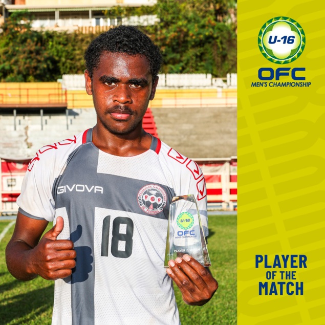 🏅Le calédonien ALEXIS IJELIPA élu 'HOMME du MATCH' de la rencontre Nouvelle-Calédonie vs Salomon (6-2) avec un retentissant quadruplé du n°18 cagou 💯 #espritcagou [Crédit visuel OFC]