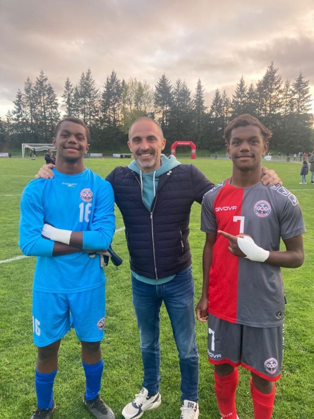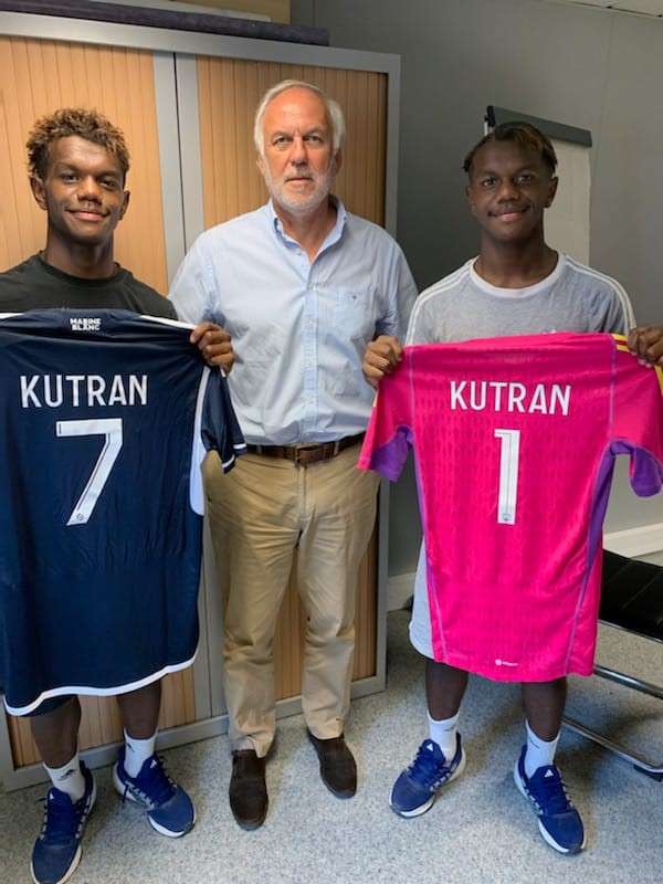 En photo (ci-dessus) : Les frères KUTRAN – originaire de LIFOU - sélectionnés au Mondial U16 de Montaigu avec la Nouvelle-Calédonie, ici accompagnés de Monsieur Patrick BATTISTON – Directeur du Centre de Formation des Girondins et ancien de l’Equipe de France