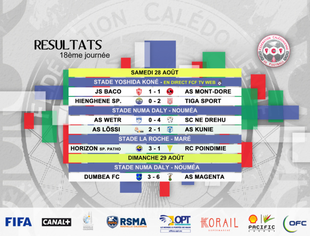 réalisations en 18 journées de championnat disputées, Kévin NEMIA (As Magenta) et Antoine ROINE (Hienghène Sport) sont au coude-à-coude au classement des Buteurs du championnat Super Ligue