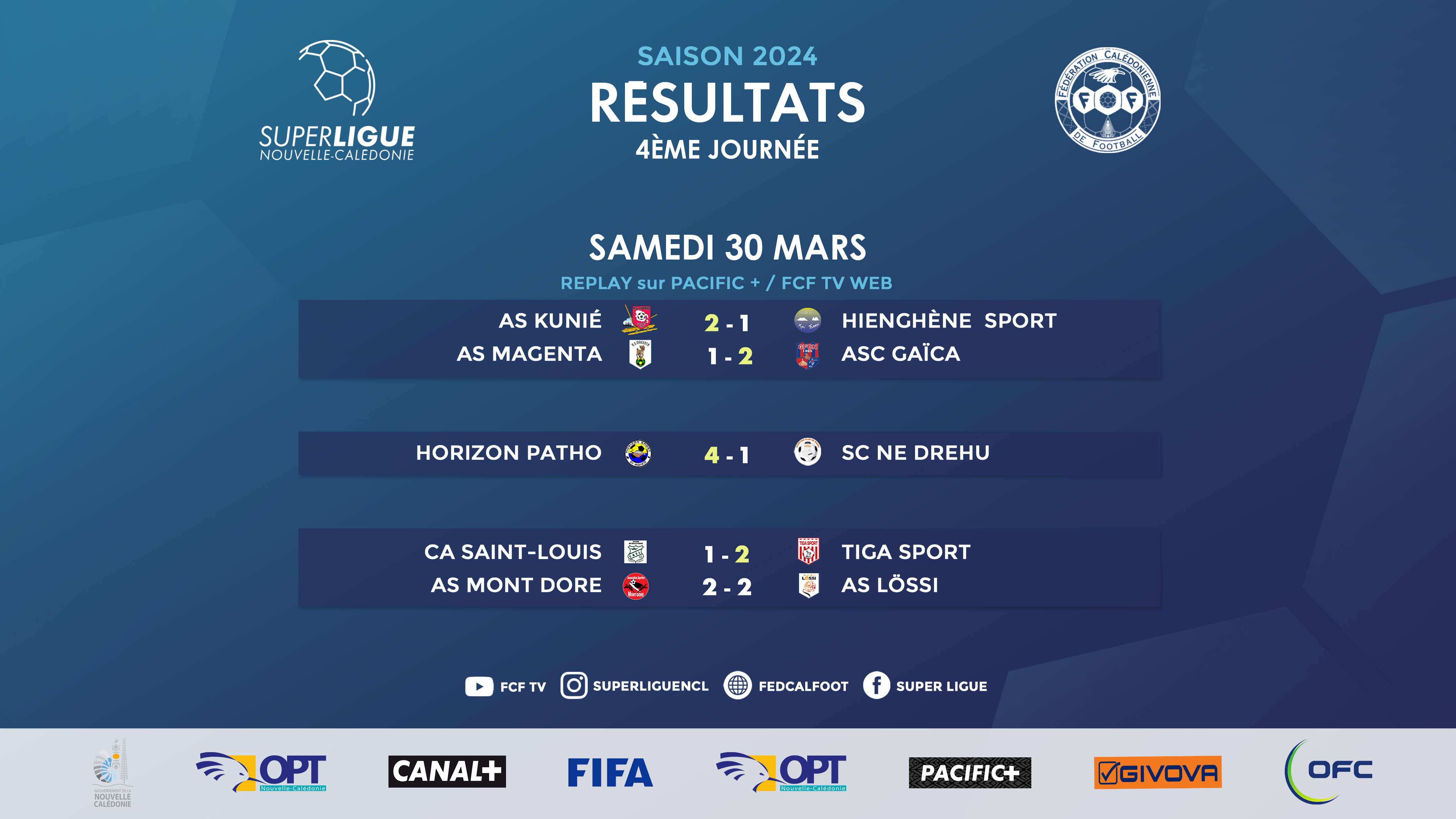 ![TIGA seul en tête de la SUPER LIGUE, l'HORIZON PATHO en second | SUPER LIGUE = Résultats - Classement J4 [Replay TV] TIGA seul en tête de la SUPER LIGUE, l'HORIZON PATHO en second | SUPER LIGUE = Résultats - Classement J4 [Replay TV]](https://www.fedcalfoot.com/photo/art/default/79174074-57383376.jpg?v=1711790536)